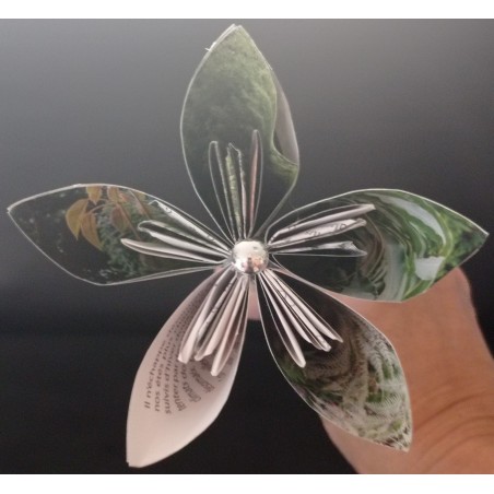 Fleurs de 12 cm fait en papier magazine avec un coeur gris
