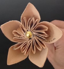Fleurs de 7 cm fait en papier de livre avec un coeur or
