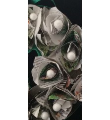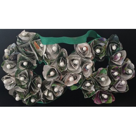 Infini en vert et blanc avec fleurs en papier fait main et boule blanche
